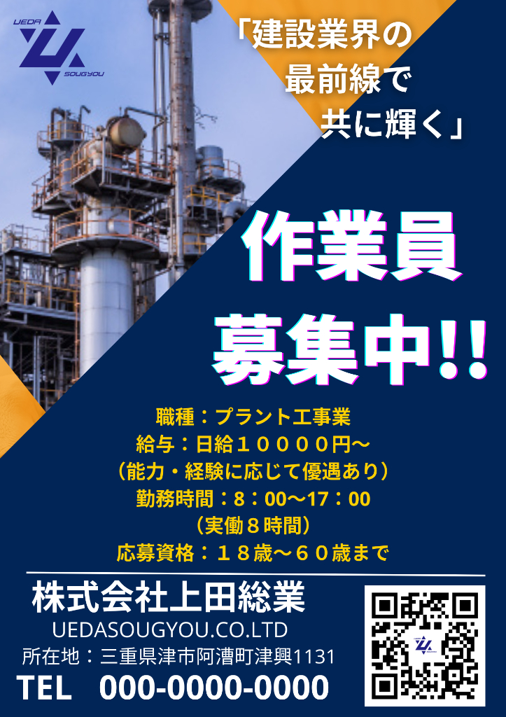 経験者、未経験者大歓迎!! 現在津市で転職を考え中の方、是非株式会社上田総業にお問い合わせください。