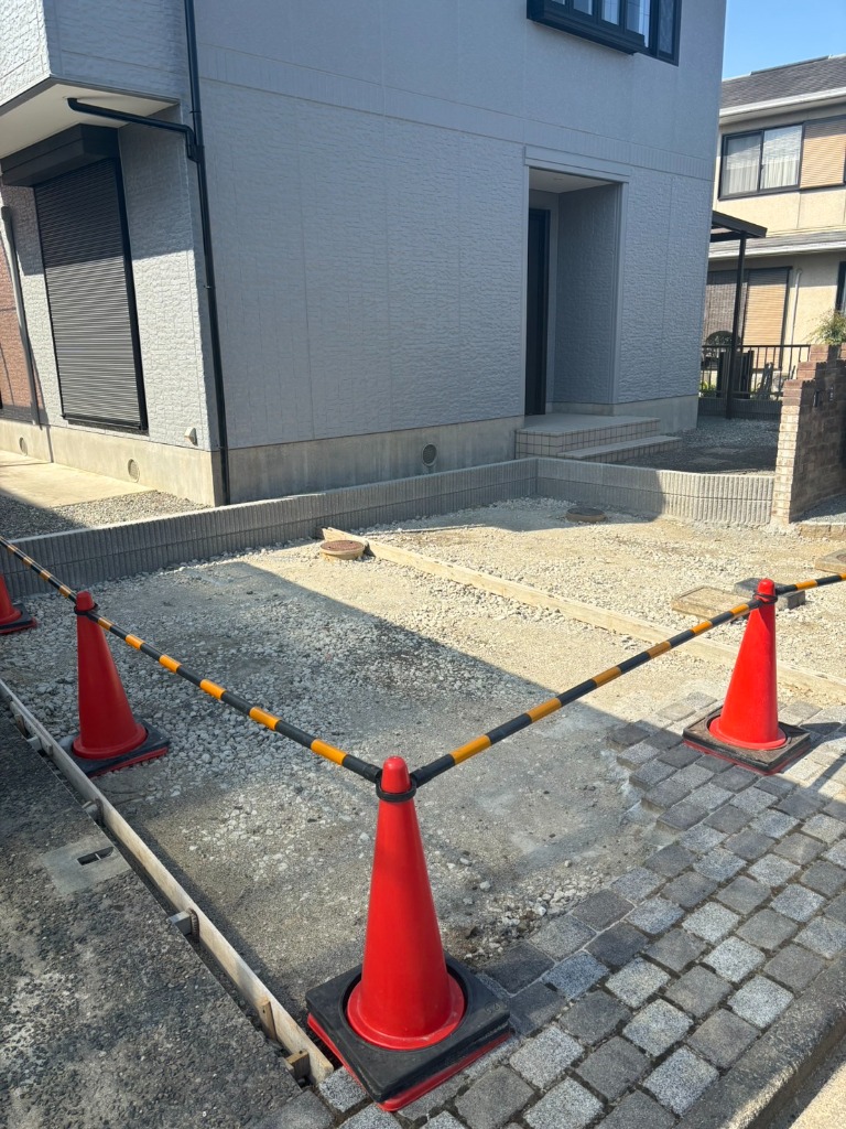 本日は、津市にて駐車所作りの工程になる、コンクリートを流す型を、設置しました。